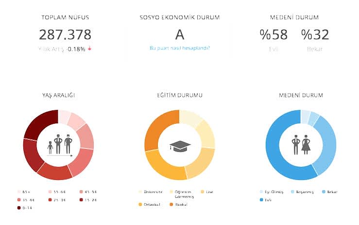 - Sosyal Yapı: İstanbul’un Zeytinburnu ilçesinde yaklaşık 287 bin kişi yaşamaktadır. Nüfusun ağırlığı 40 yaş ve altıdır. Zeytinburnu’nda yaşayanların yüzde 58’i evlidir. Sosyoekonomik açıdan bakıldığında ise Zeytinburnu’nda yaşayanların “A-“ yani üst gelir seviyesinde olduğu görülür.